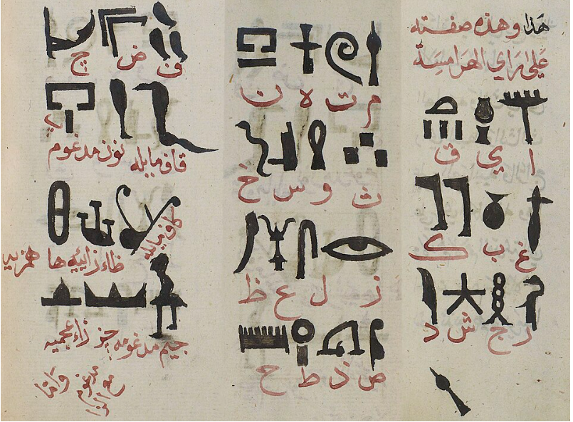 In the 9th or 10th century, Ibn Wahshiyya — or perhaps Hasan ibn Faraj, whose work he copied — compiled Kitāb Shawq al-mustahām fī maʿrifat rumūz al-aqlām (“The Book of the Desire of the Maddened Lover for the Knowledge of Secret Scripts”). The manuscript catalogued 89 ancient scripts, including Egyptian hieroglyphs. What set it apart was its recognition that hieroglyphs combined ideographic meaning with phonetic sound — a conceptual leap that European scholars would not make for centuries.