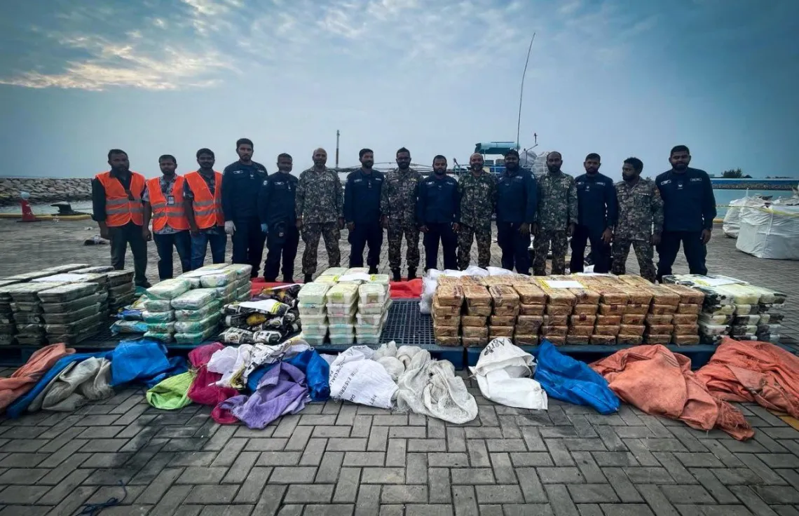 MALÉ, Maldives —  In one of the largest drug seizures in recent Maldivian history, authorities intercepted nearly 470 kilograms of narcotics from a Sri Lankan vessel on Sunday, while a separate customs operation discovered additional drugs at Male’ port, as President Mohamed Muizzu pledged to combat the island nation’s growing drug epidemic.