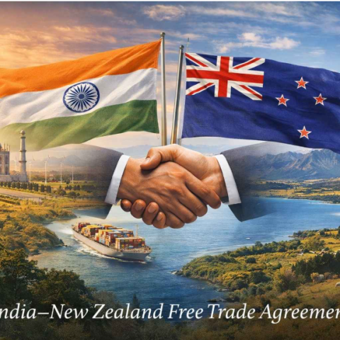 NEW DELHI — In a handshake that capped nine months of negotiations, New Zealand’s prime minister, Christopher Luxon, and India’s finance minister, Nirmala Sitharaman,
