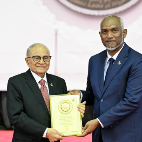 MALÉ, Maldives — President Dr. Mohamed Muizzu on Monday presented a special commemorative shield to former President Maumoon Abdul Gayoom, honoring his leadership during the