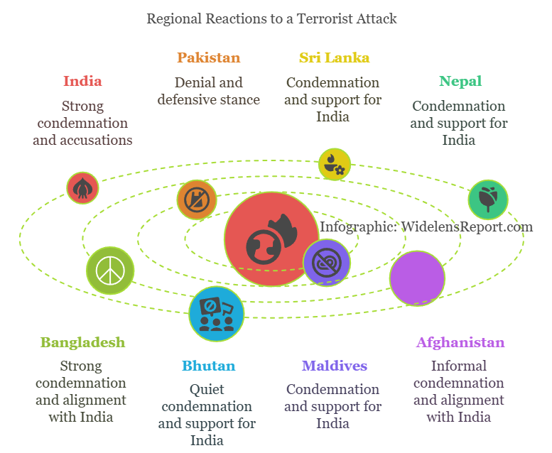 All most all South Asian nations, except Pakistan, aligned with India’s narrative, condemning the attack as terrorism and supporting its counterterrorism efforts. This reflects India’s regional influence and shared concerns about terrorism, particularly in countries like Bangladesh and Sri Lanka, which have faced similar threats.