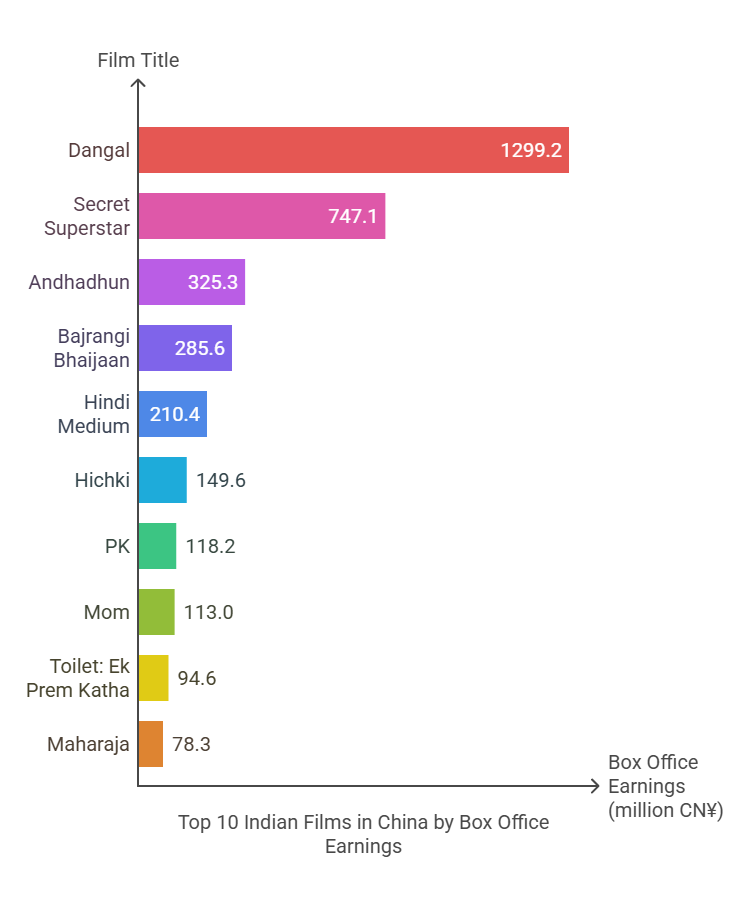 The money keeps rolling in. Take Andhadhun, a twisty 2018 thriller with Ayushmann Khurrana—it nabbed 325.3 million CN¥ ($49.31 million USD, 413 crore INR) in 2019. Hindi Medium, a 2017 social drama about education, scored 210.4 million CN¥ ($31.90 million USD, 267 crore INR) in 2018. Rani Mukerji’s Hichki, about a teacher with Tourette’s, added 149.6 million CN¥ ($22.68 million USD, 190 crore INR) that same year. Even PK, Aamir Khan’s 2014 satire on religion, pulled 118.2 million CN¥ ($17.92 million USD, 150 crore INR) in 2015. Sridevi’s final film, Mom, a revenge tale, hit 113 million CN¥ ($17.13 million USD, 143 crore INR) in 2019, while Akshay Kumar’s Toilet: Ek Prem Katha, tackling India’s sanitation crisis, earned 94.6 million CN¥ ($14.34 million USD, 120 crore INR) in 2018.